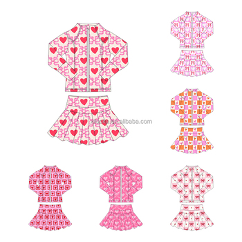 Custom Printed Girls Yoga Set Long Sleeve Jacket & Skirt Kids Activewear Sportswear Outfit with Logo Design for Children